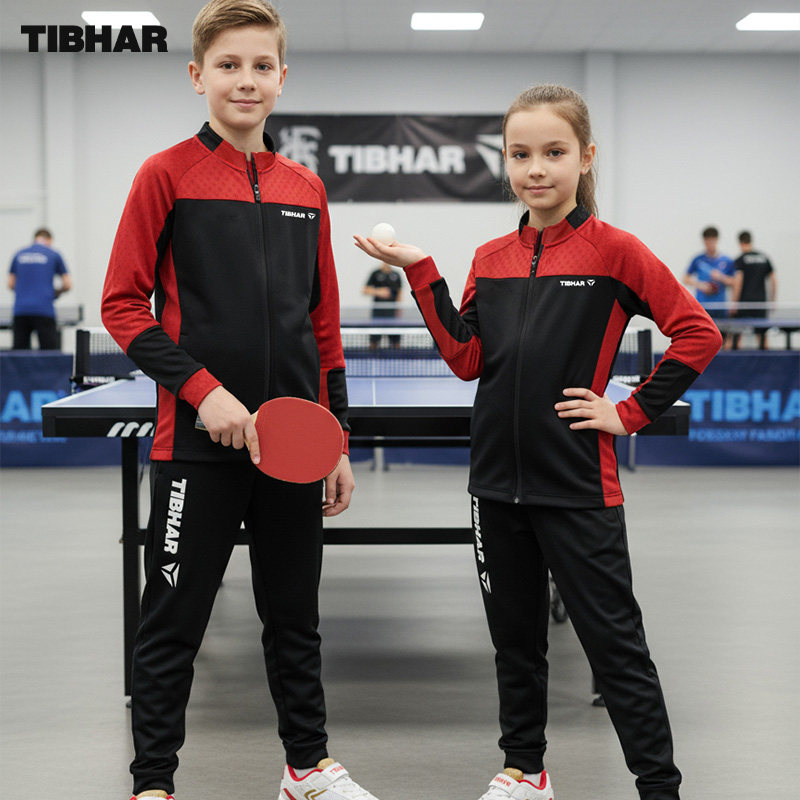 TIBHAR挺拔儿童乒乓球衣长袖球服套装新款训练服速干上衣运动套装