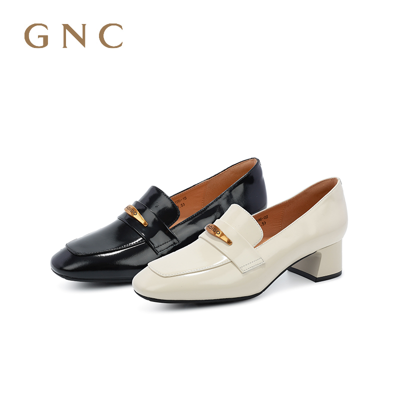 GNC真皮方头乐福鞋女2025新款女鞋粗跟百搭英伦风小皮鞋通勤单鞋