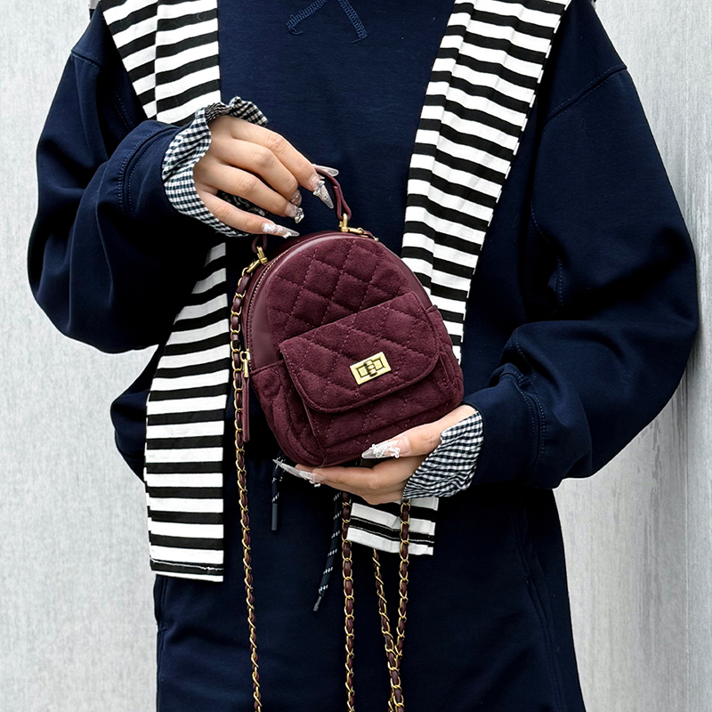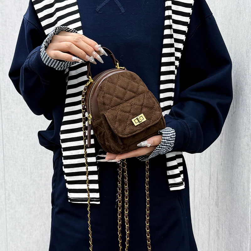 法国名媛风迷你双肩包小香风菱格链条背包古着感麂皮绒复古小书包