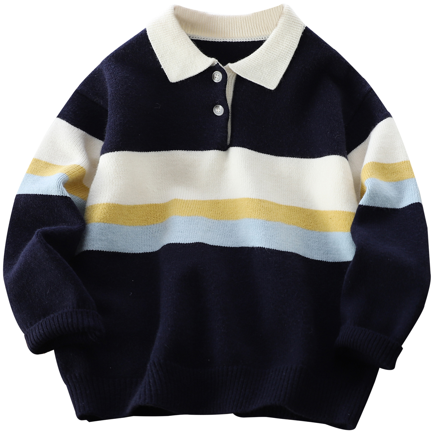 男童翻领针织毛衣2025秋冬季儿童百搭POLO领上衣中大童洋气套头衫