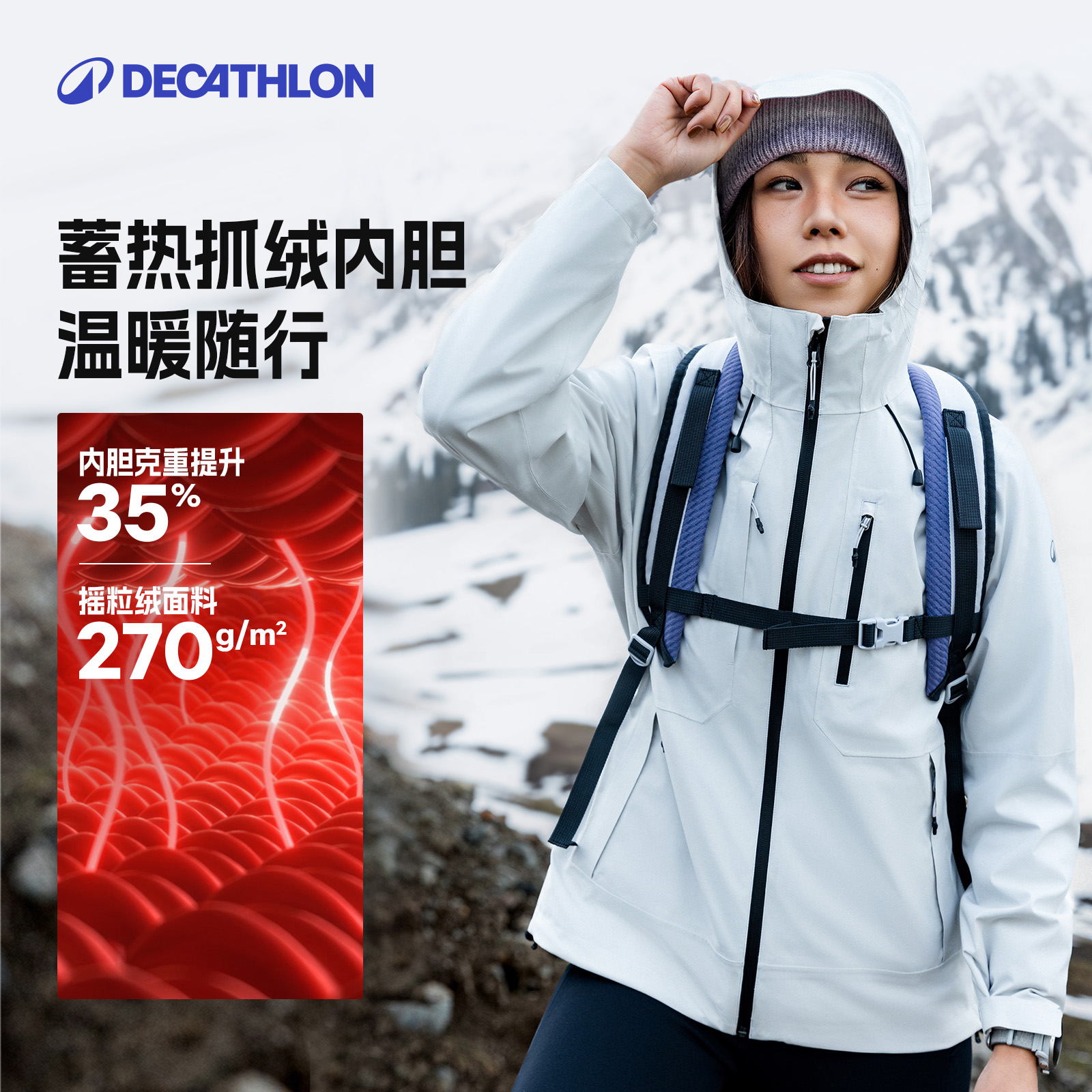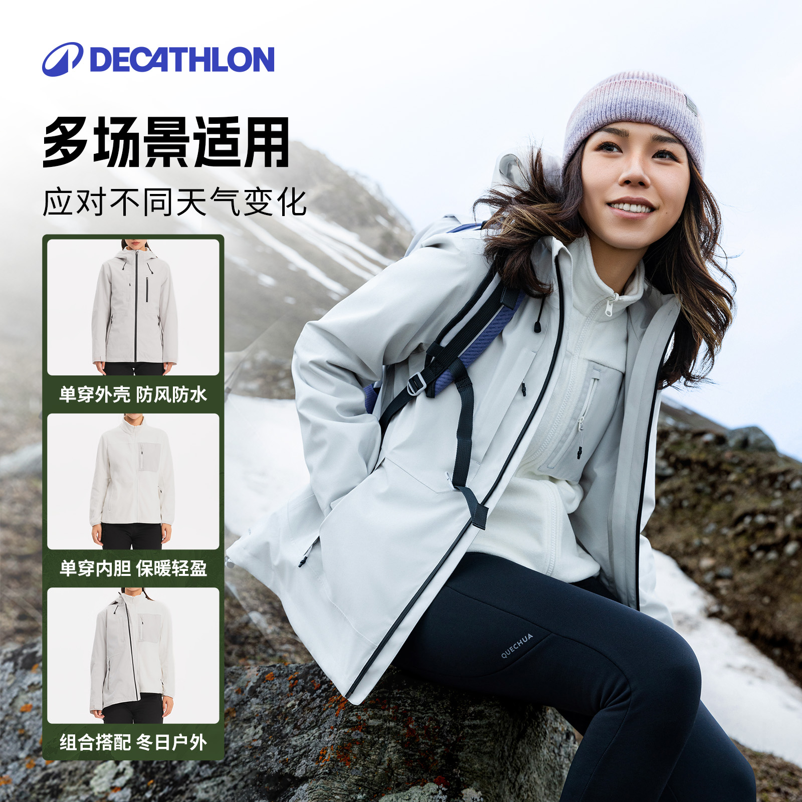 迪卡侬冲锋衣三合一户外抓绒外套秋冬防风防水夹克男女登山服ODW