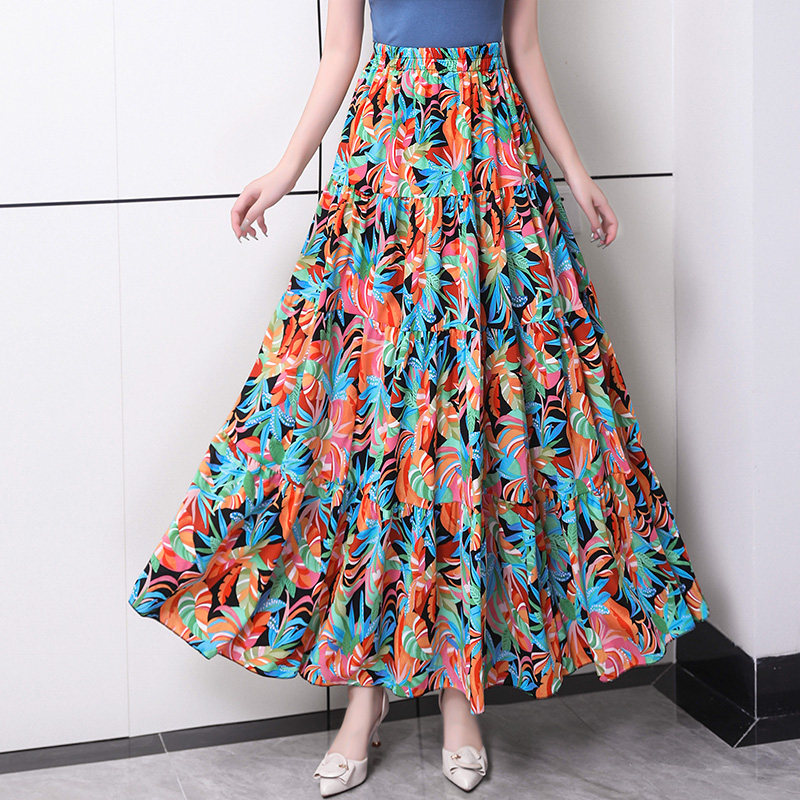 长裙a字裙度假风梨形印花