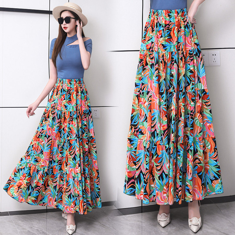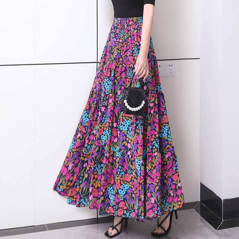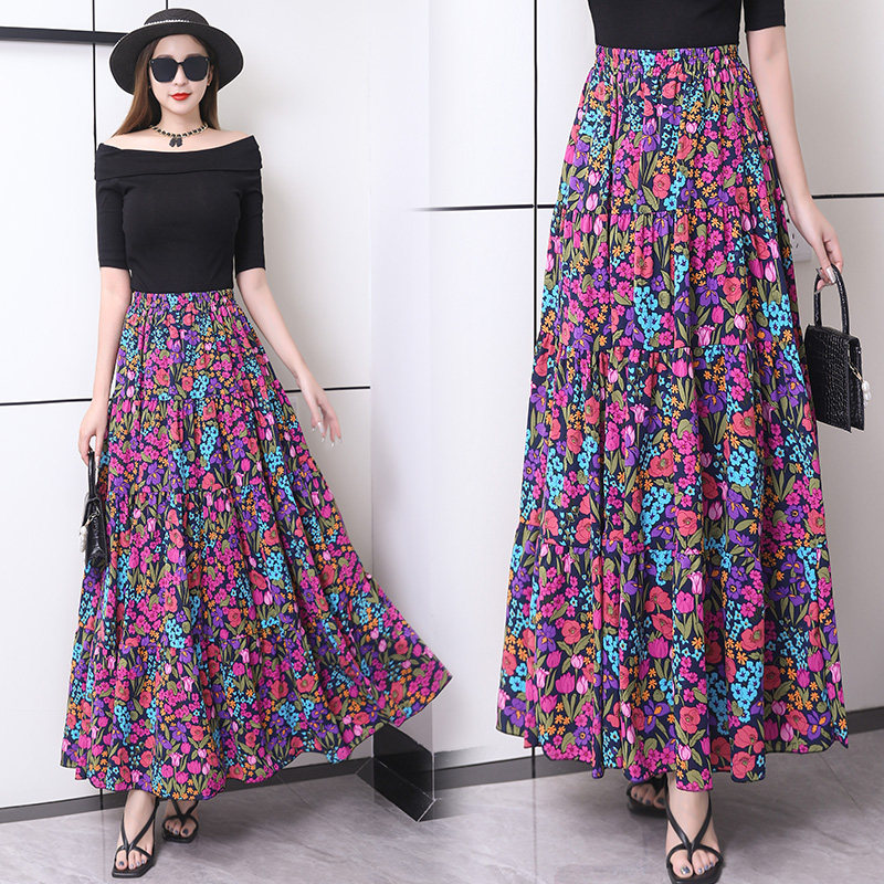 夏季新款半身裙高腰修身百搭大摆裙长裙显瘦碎花百褶裙垂感a字裙