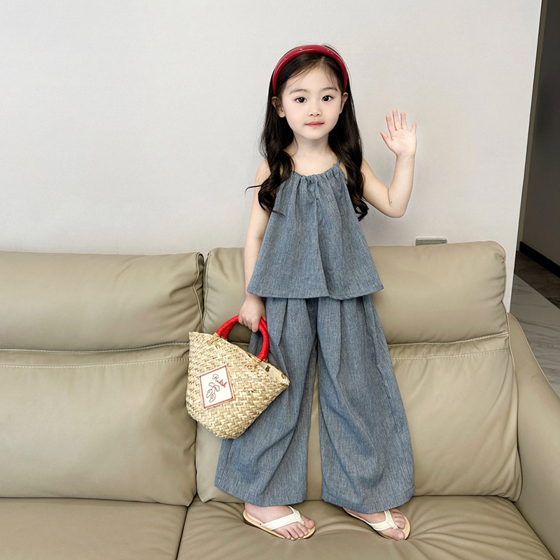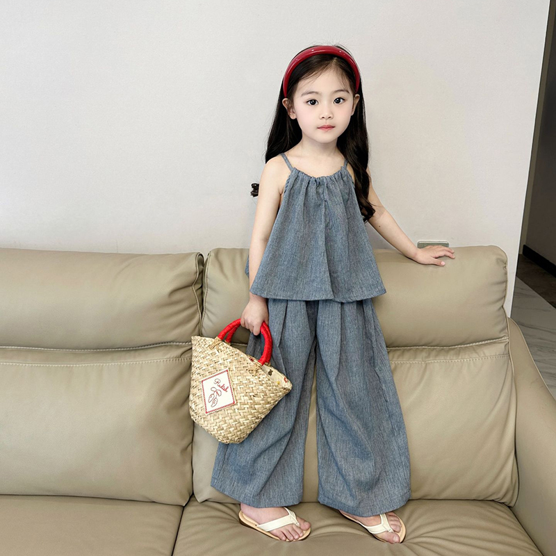 女童牛仔吊带套装夏装2025新款女宝宝韩系洋气两件套夏季儿童装潮