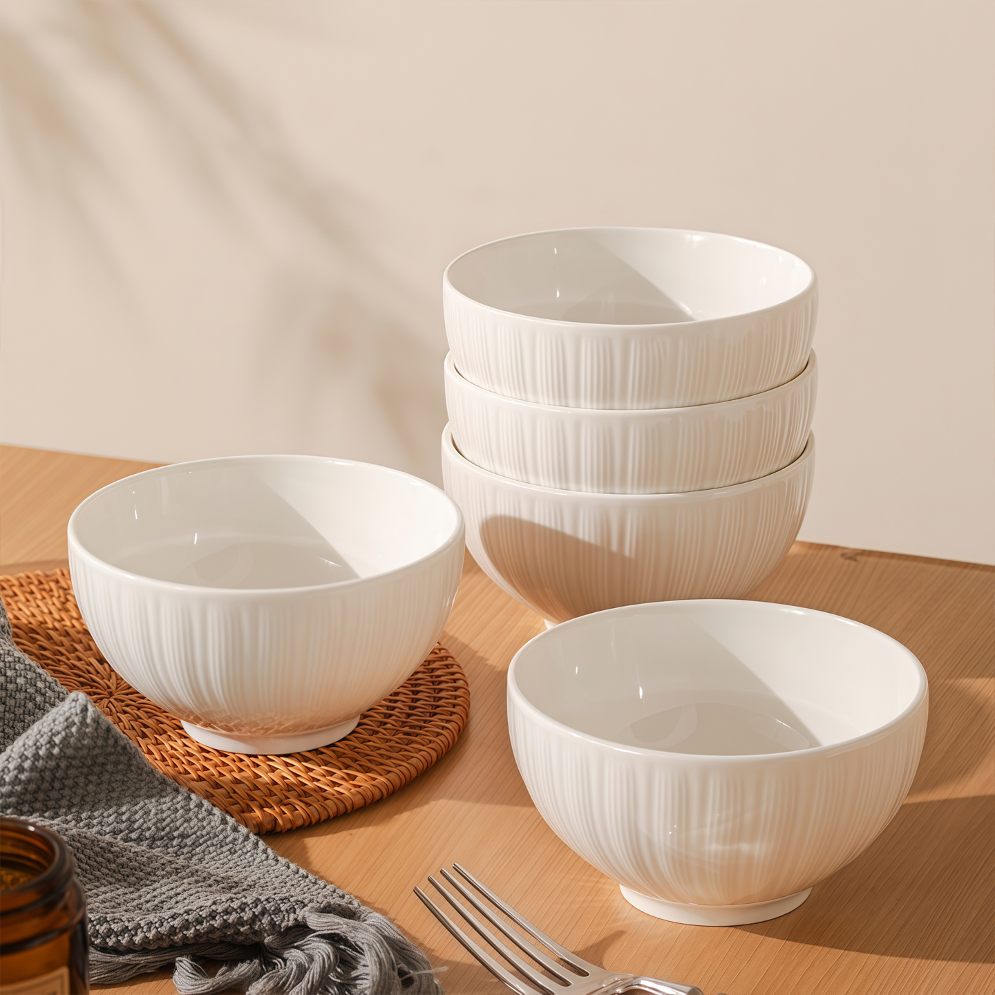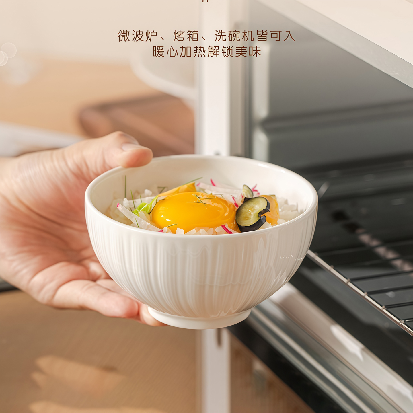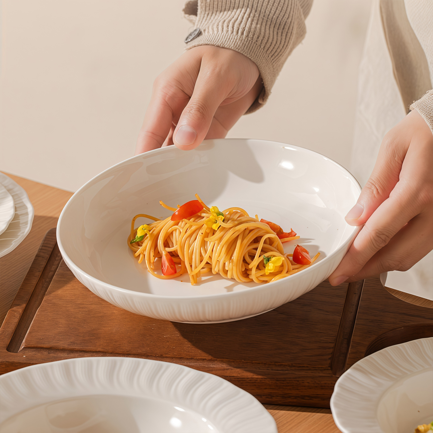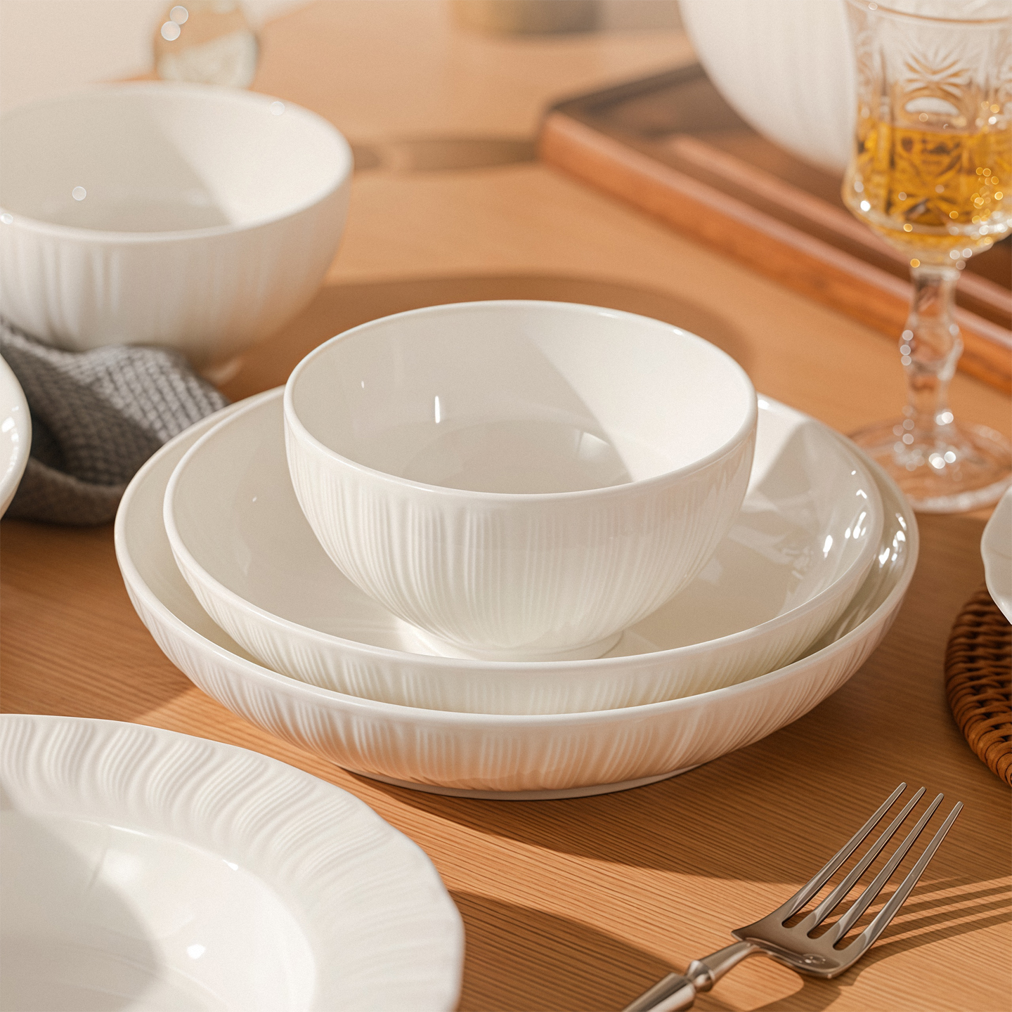 简约纯白陶瓷碗盘子釉下彩吃饭碗家用2025年新款高颜值花瓣碗菜盘