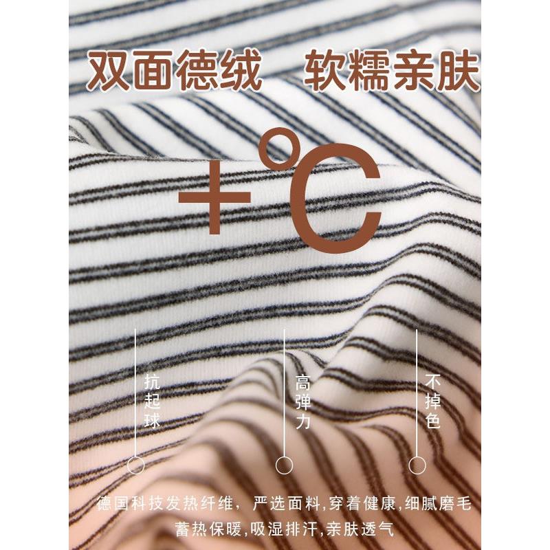 儿童加绒加厚打底衫德绒半高领长袖条纹T恤秋冬装男女童高领上衣