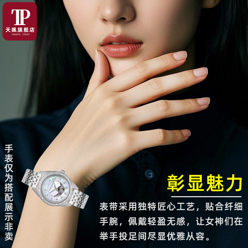 天姵适配阿玛尼龙年机械表AR60075系列女士精钢手表带气质腕带16
