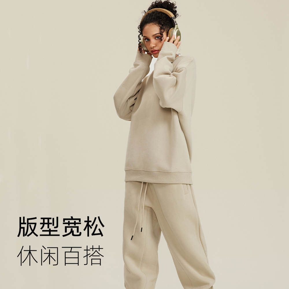 加绒卫衣卫裤套装美式重磅秋冬男女潮牌休闲运动宽松纯色套头上衣