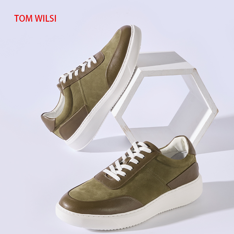 TOM WILSI男鞋春秋新款运动休闲鞋厚底增高舒适透气真皮男士板鞋