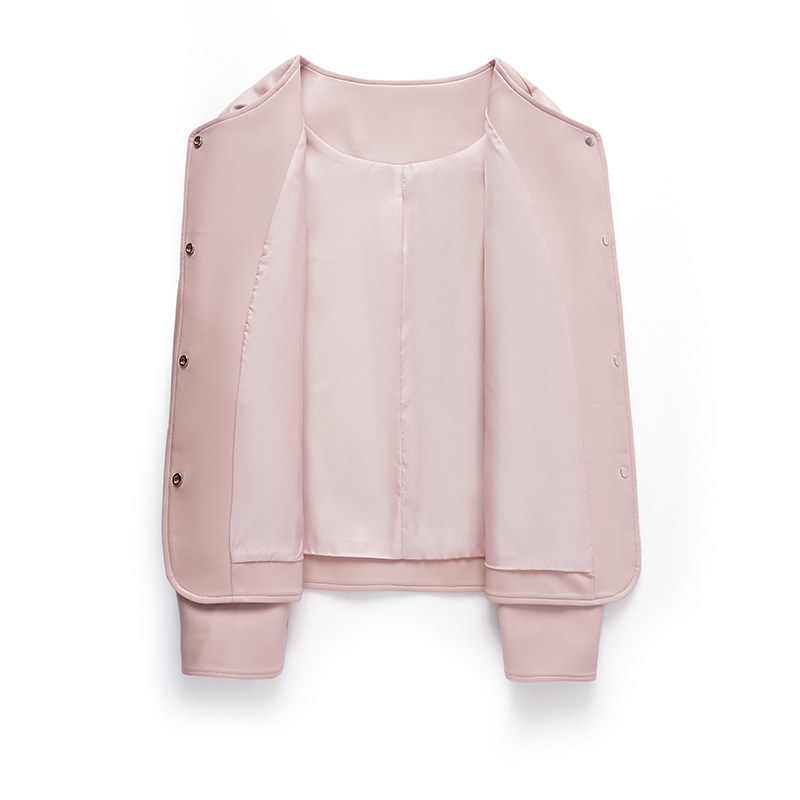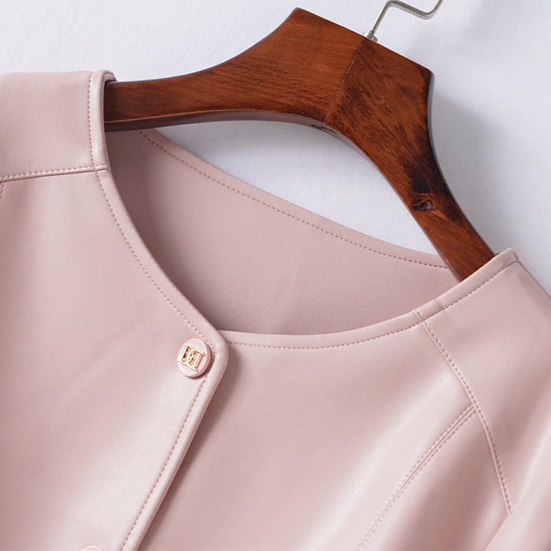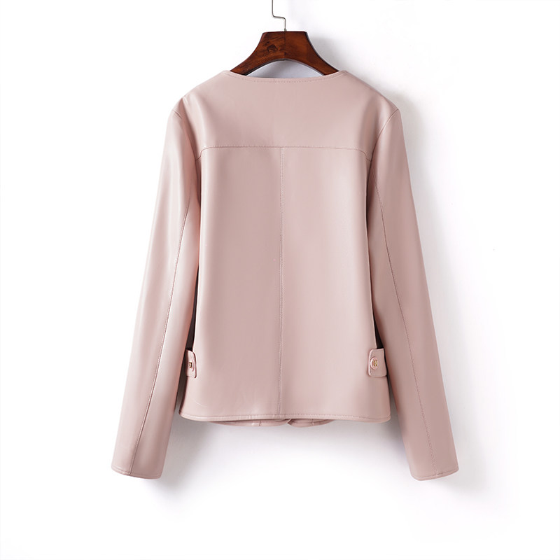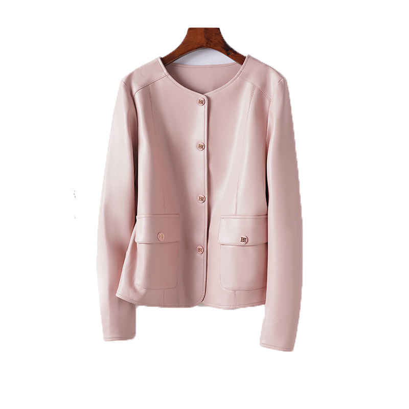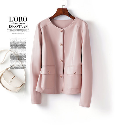 海宁皮夹克女真皮外套短款圆领粉色减龄绵羊皮秋冬新款皮衣小个子