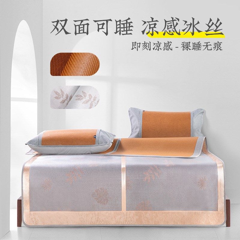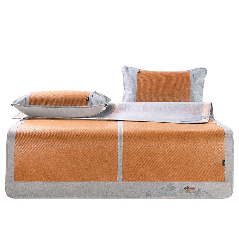 远梦家纺席子单双人大床双面凉席冰麻席冬夏两用咖色家用藤席透气