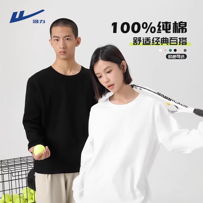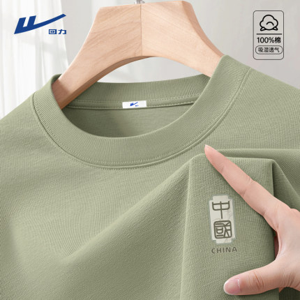 回力中国风纯棉长袖t恤男抹茶绿宽松内搭上衣秋季重磅打底衫男款Y