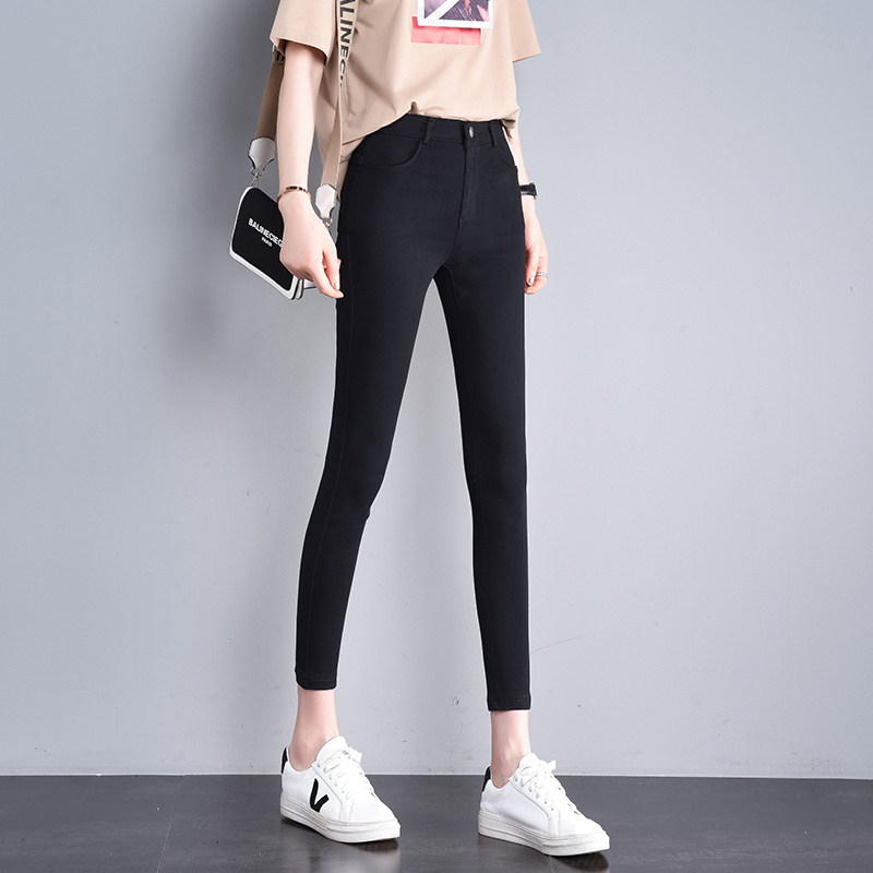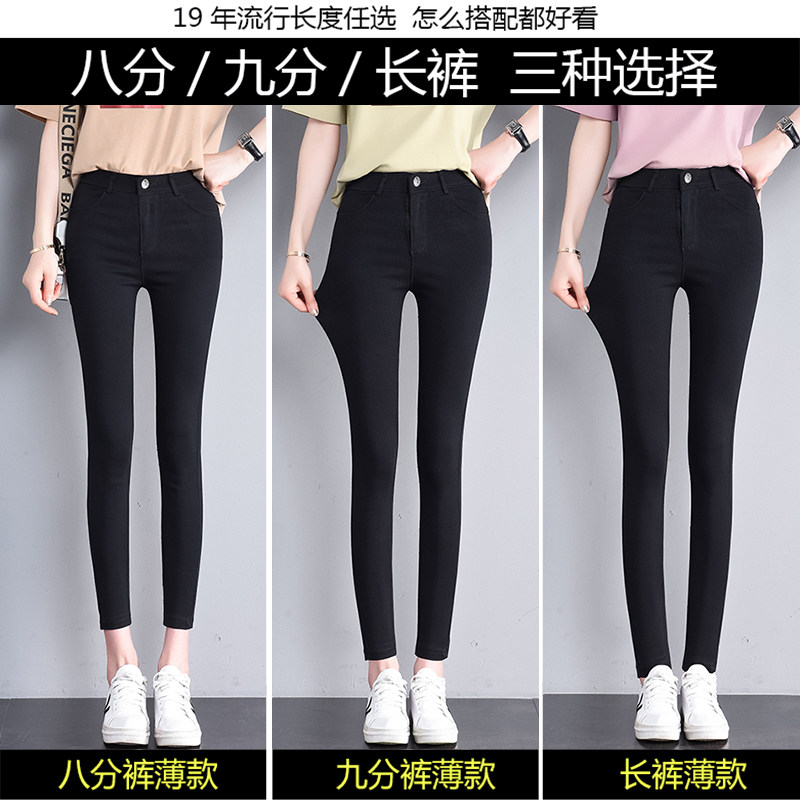 打底裤女外穿春秋2025新款加绒弹力高腰小脚铅笔黑色裤子九分黑裤