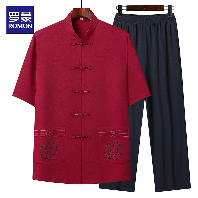 罗蒙亲肤透气轻薄短袖t恤套装
