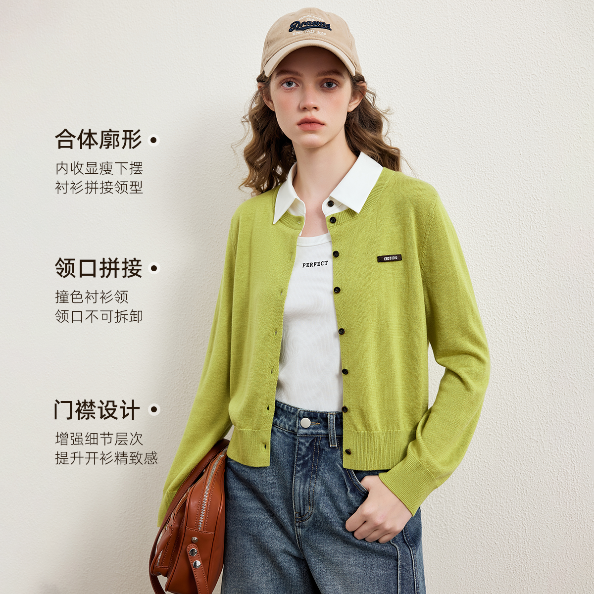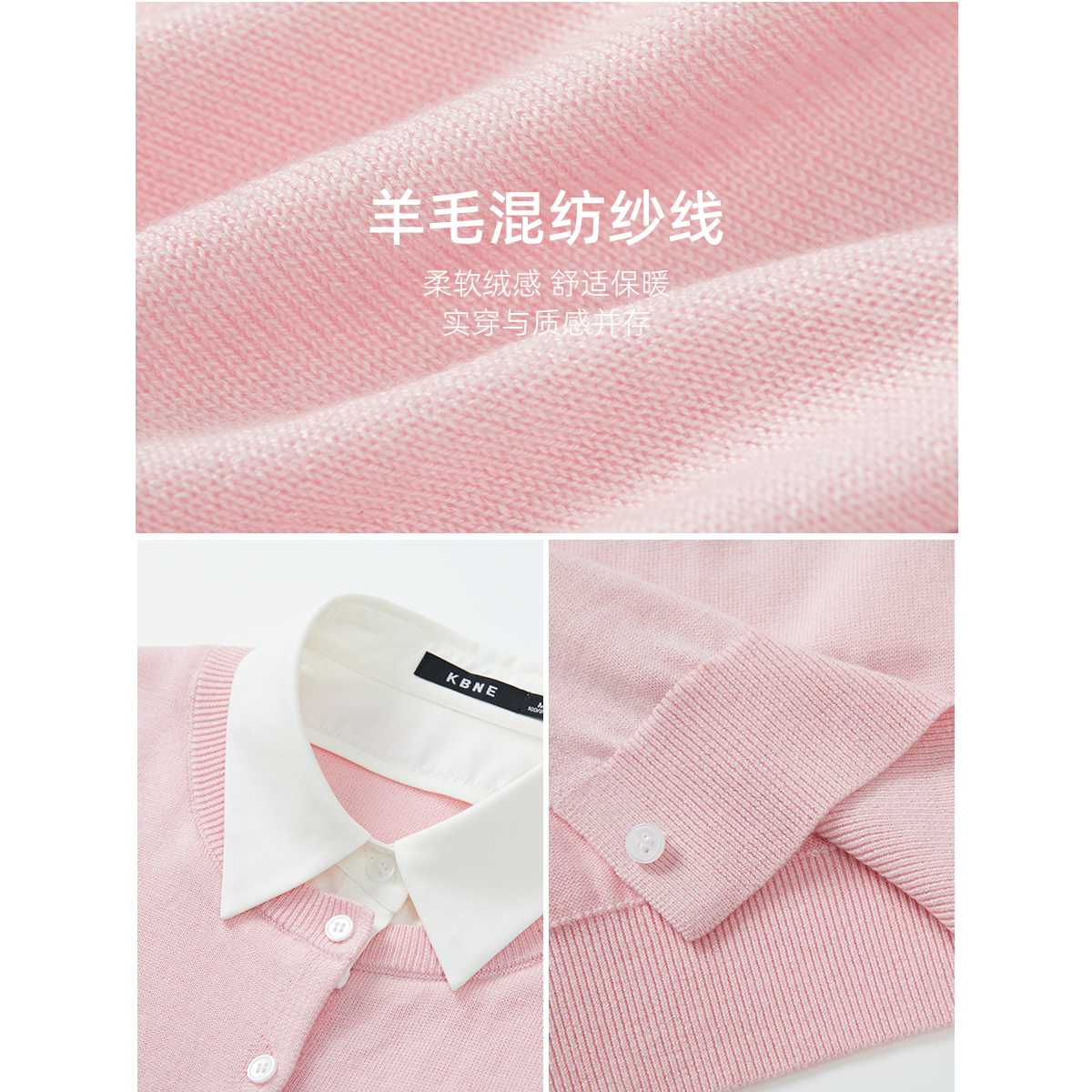 KBNE粉色学院风假两件针织开衫女2026春季新款设计感短款针织上衣