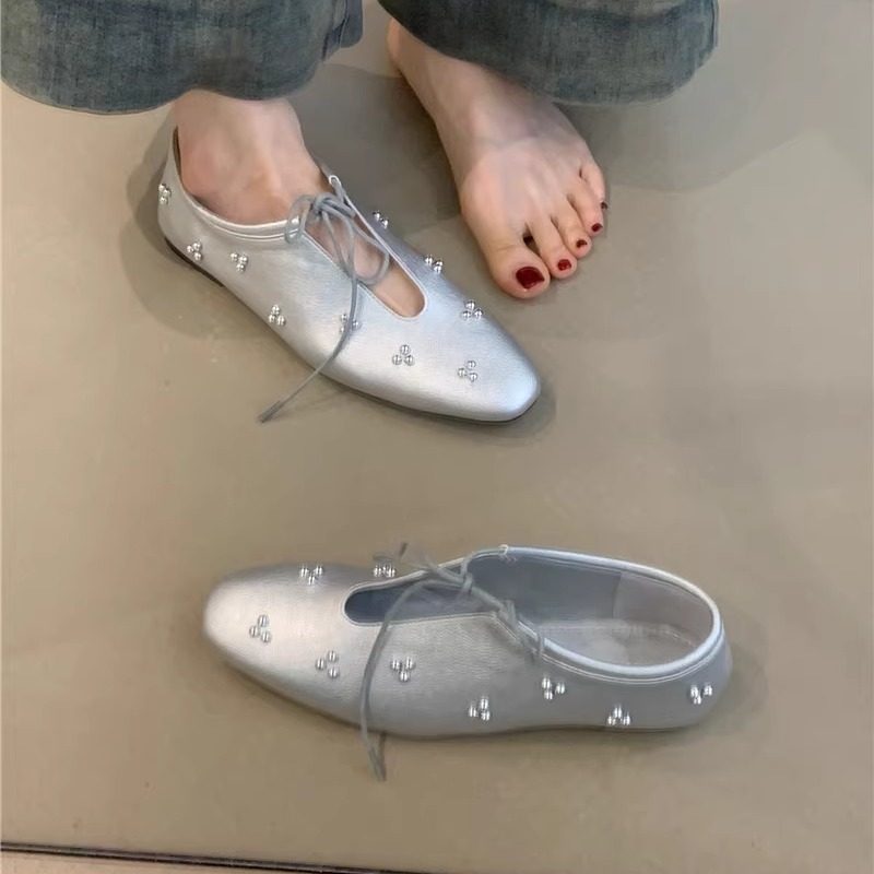 小众设计感铆钉单鞋2025年新款韩版复古时髦圆头浅口平底玛丽珍鞋