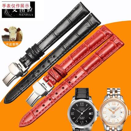 适用牛皮表带适配1853天梭T41力洛E克女真皮表带手表带12MM皮带