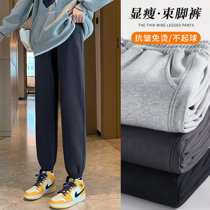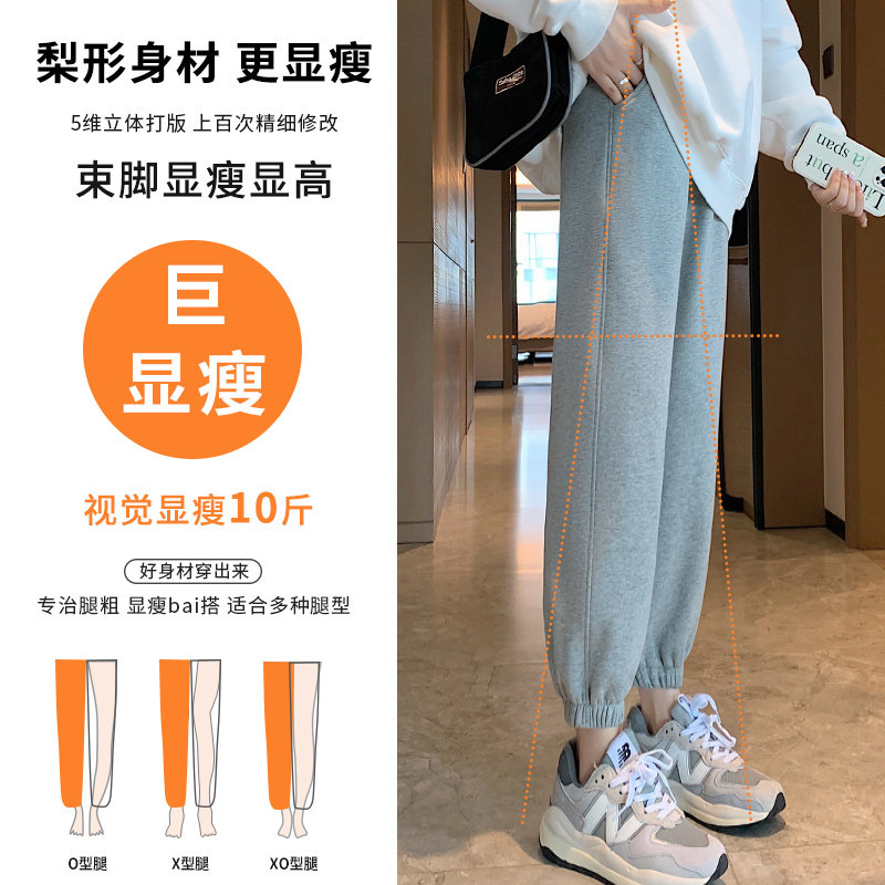 加绒运动裤女冬季卫裤宽松束脚2025新款爆款直筒春秋薄款休闲裤子