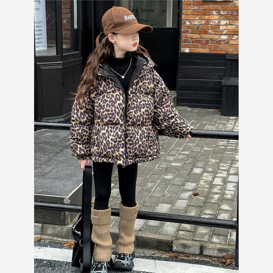女童棉衣秋冬装2025新款洋气时髦网红豹纹棉服冬季加厚外套棉袄潮