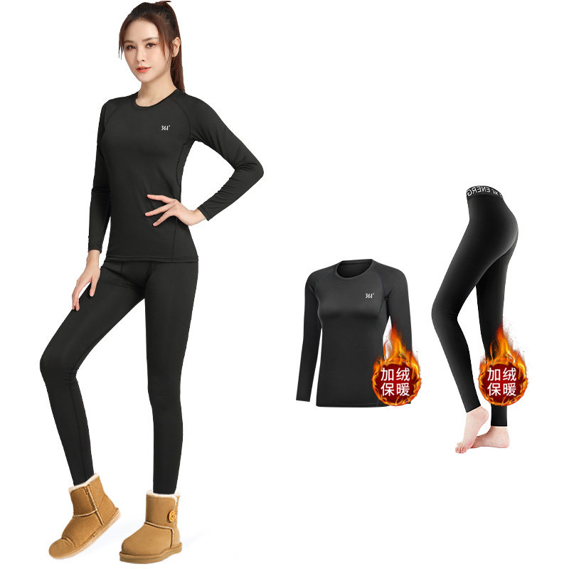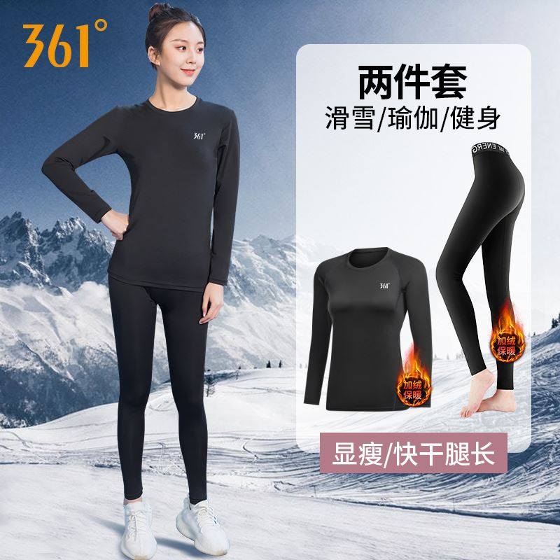 361度滑雪服保暖内衣瑜伽健身跑步运动套装户外打底冬加绒防寒女