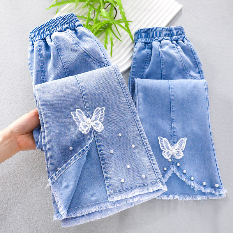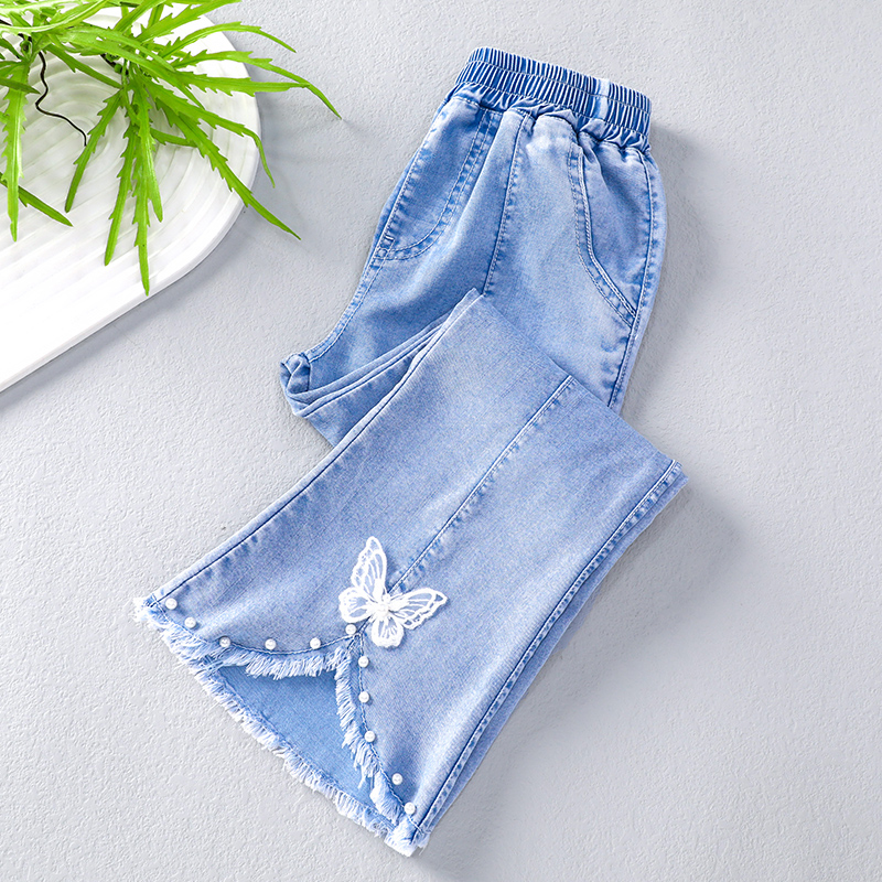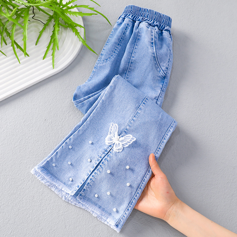 女童喇叭薄款裤子夏季新款冰凉天丝透气女孩牛仔裤宽松中大童裤子