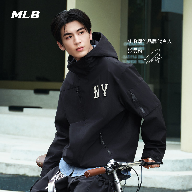 MLB梭织防风衣男女装2025秋季新款夹克连帽黑色NY外套潮3AWJB0644