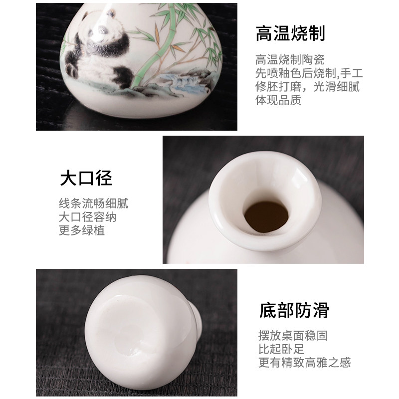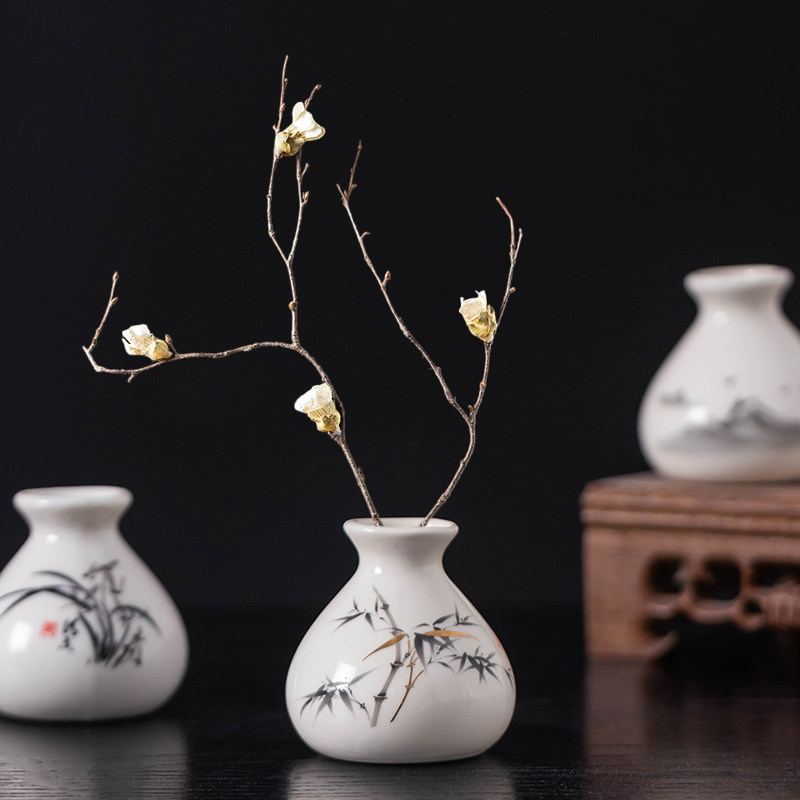 中式手绘小花瓶绿萝水培植物花器小口径桌面干花插花器陶瓷小摆件