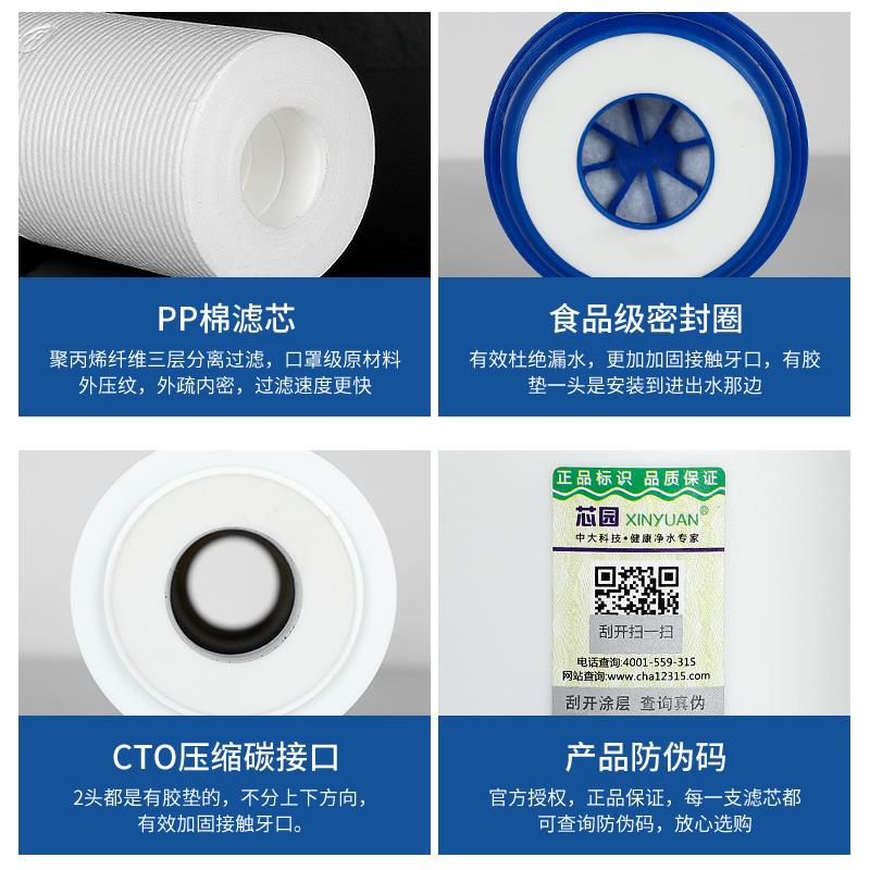 芯园20寸净水器滤芯通用商用前置保安过滤器PP棉活性炭套装前三级
