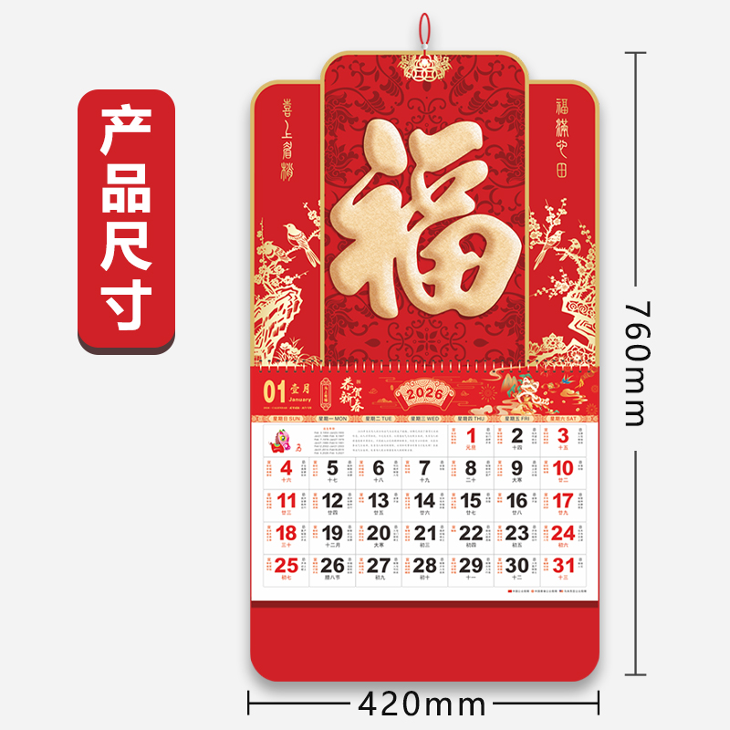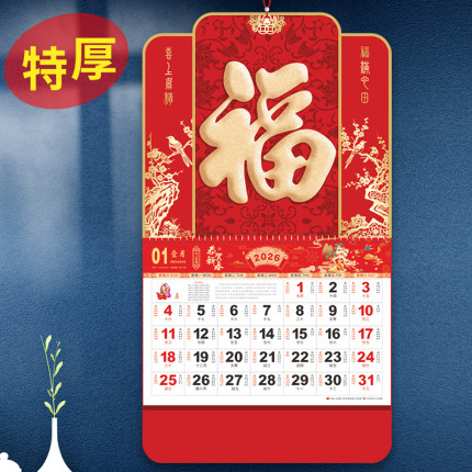 马年新款福字挂历2026定制大号加厚中国红福牌吊牌公司企业单位广告礼品定做家用挂墙月历日历老式挂历印LOGO