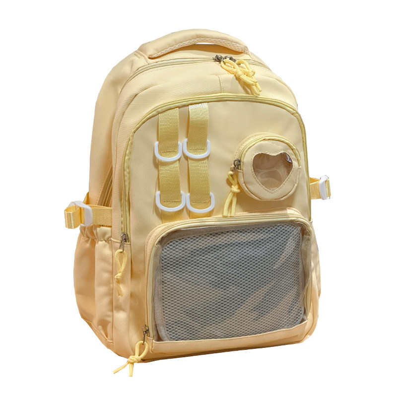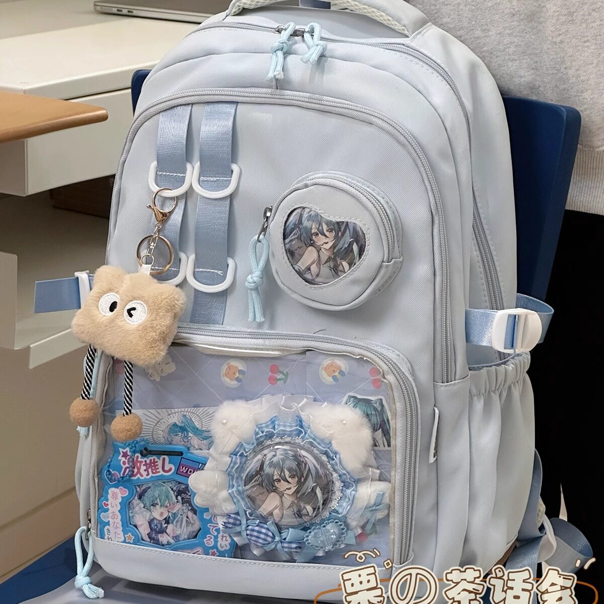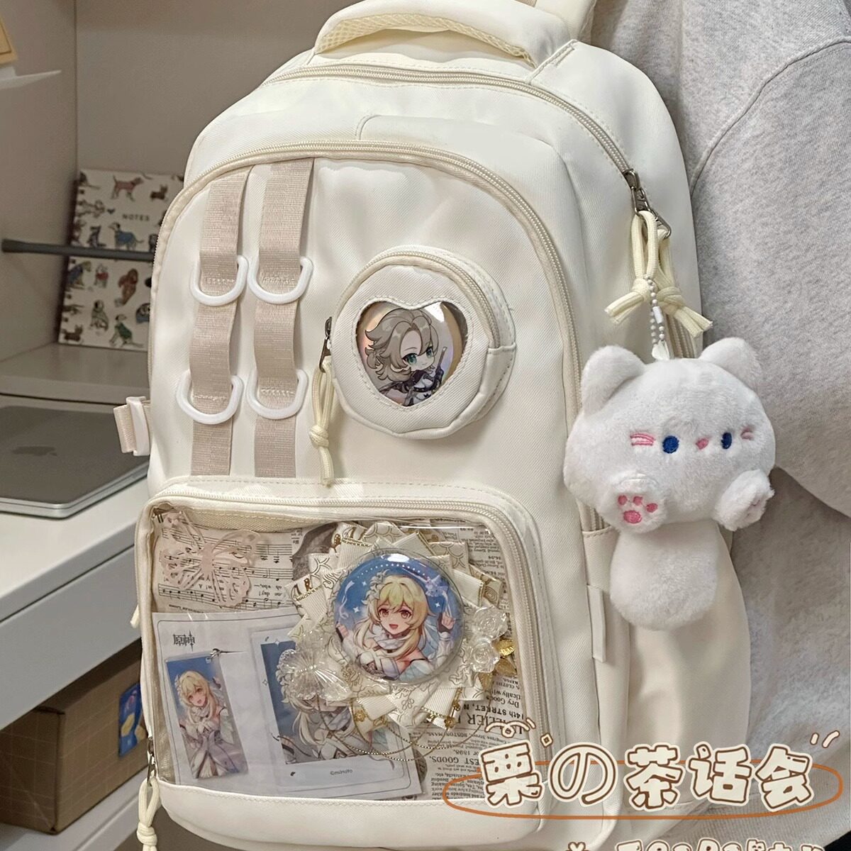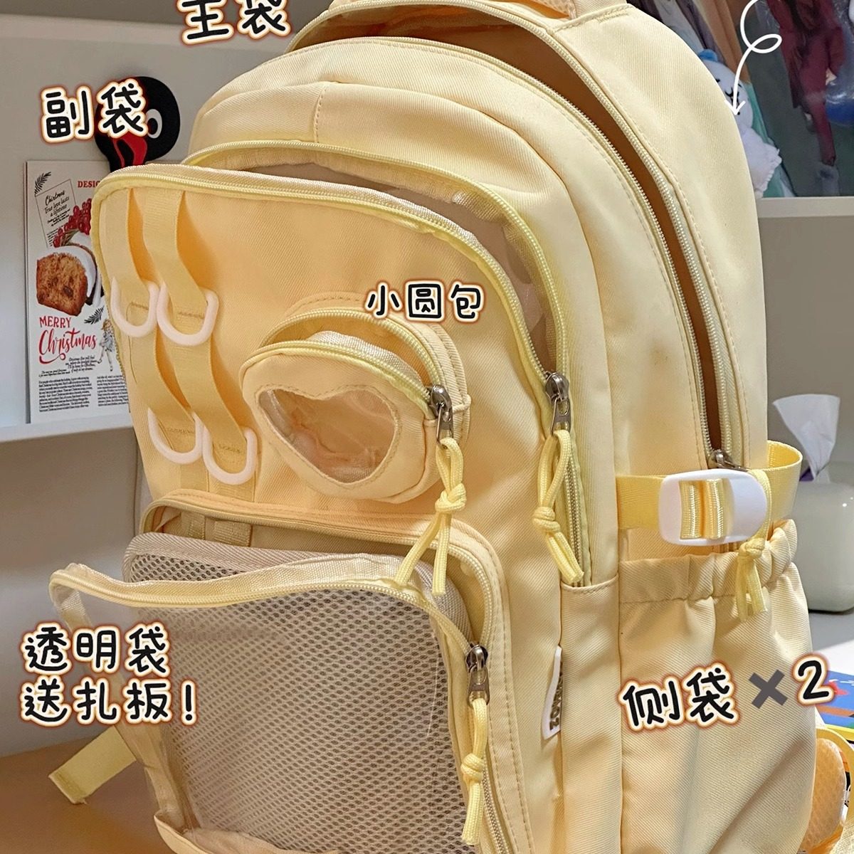 日系简约百搭学生书包女可爱吧唧痛包双肩包初中女生高中学生背包
