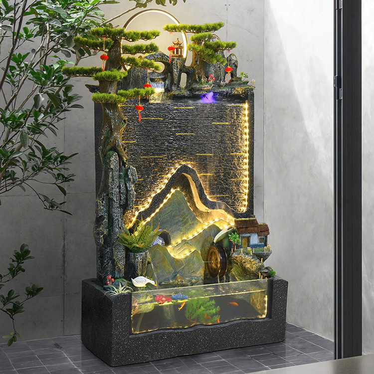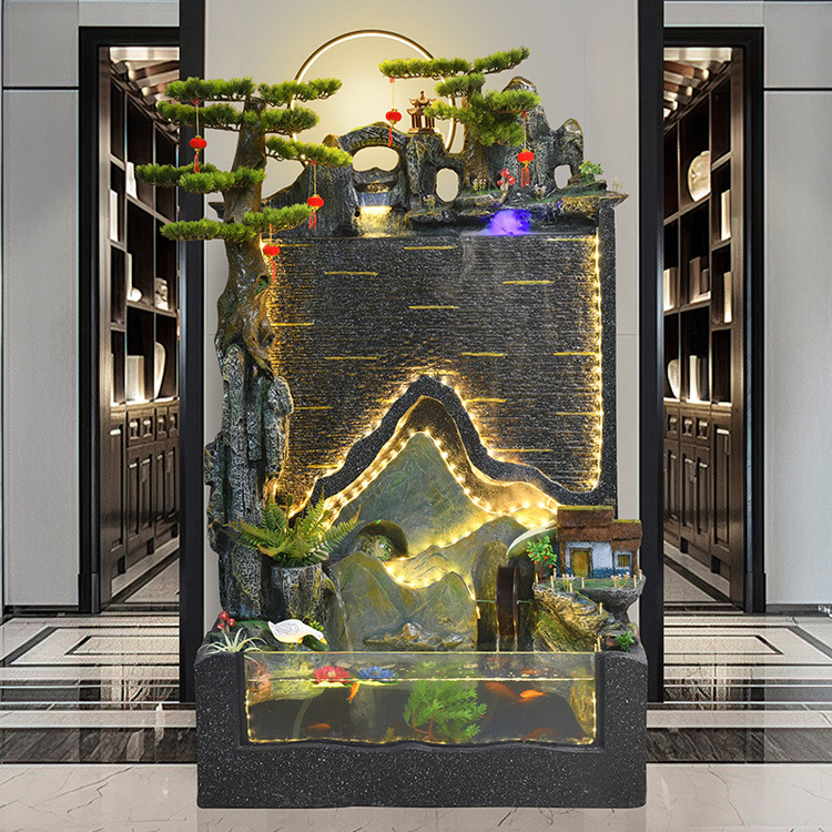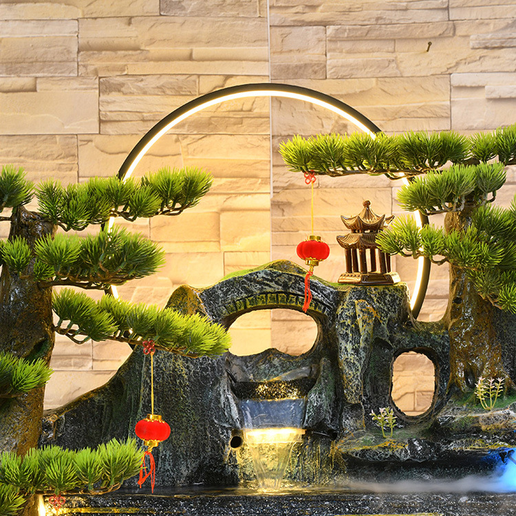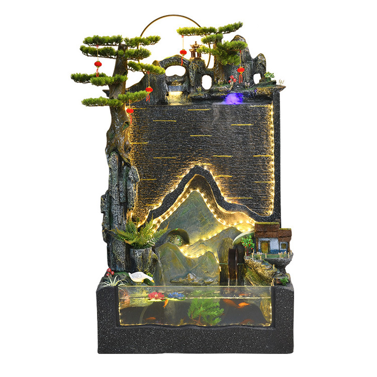 新款落地流水器造景鱼缸假山循环水喷泉瀑布水幕墙家居装饰品摆件