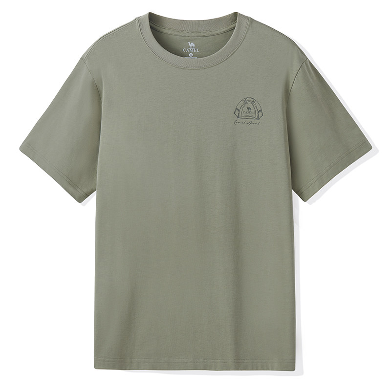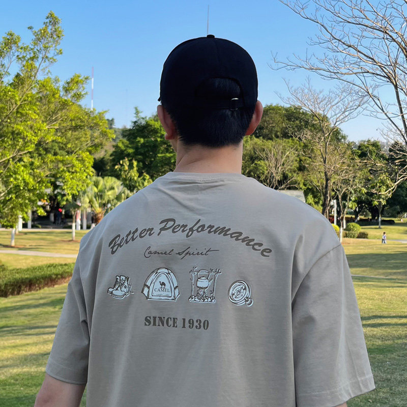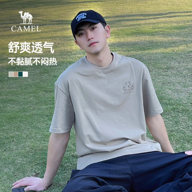 骆驼男装短袖t恤2024新款男夏重磅纯棉圆领宽松印花半袖体恤