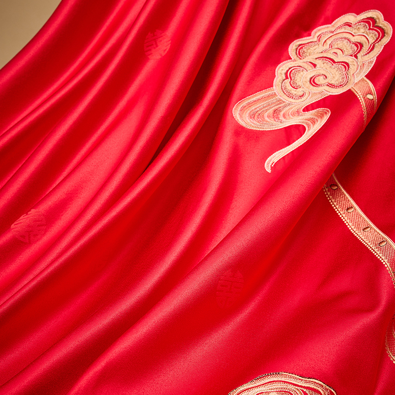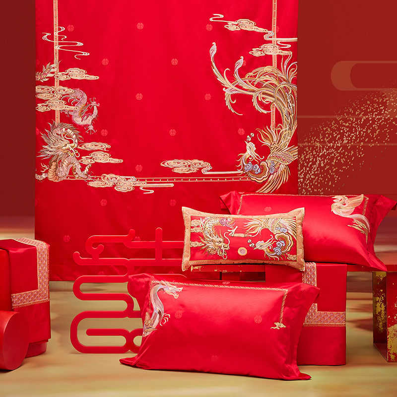 罗莱家纺结婚四件套婚床上用品大红色新婚囍嫁喜被被套婚庆八件套