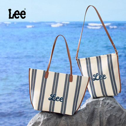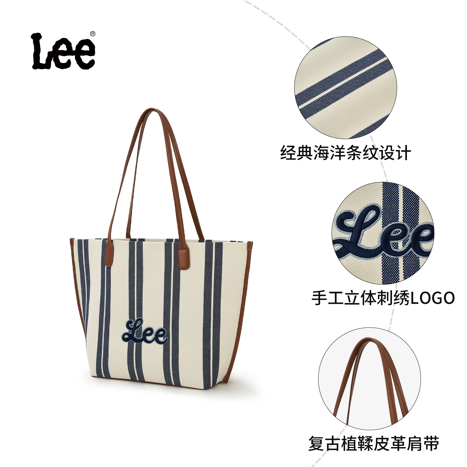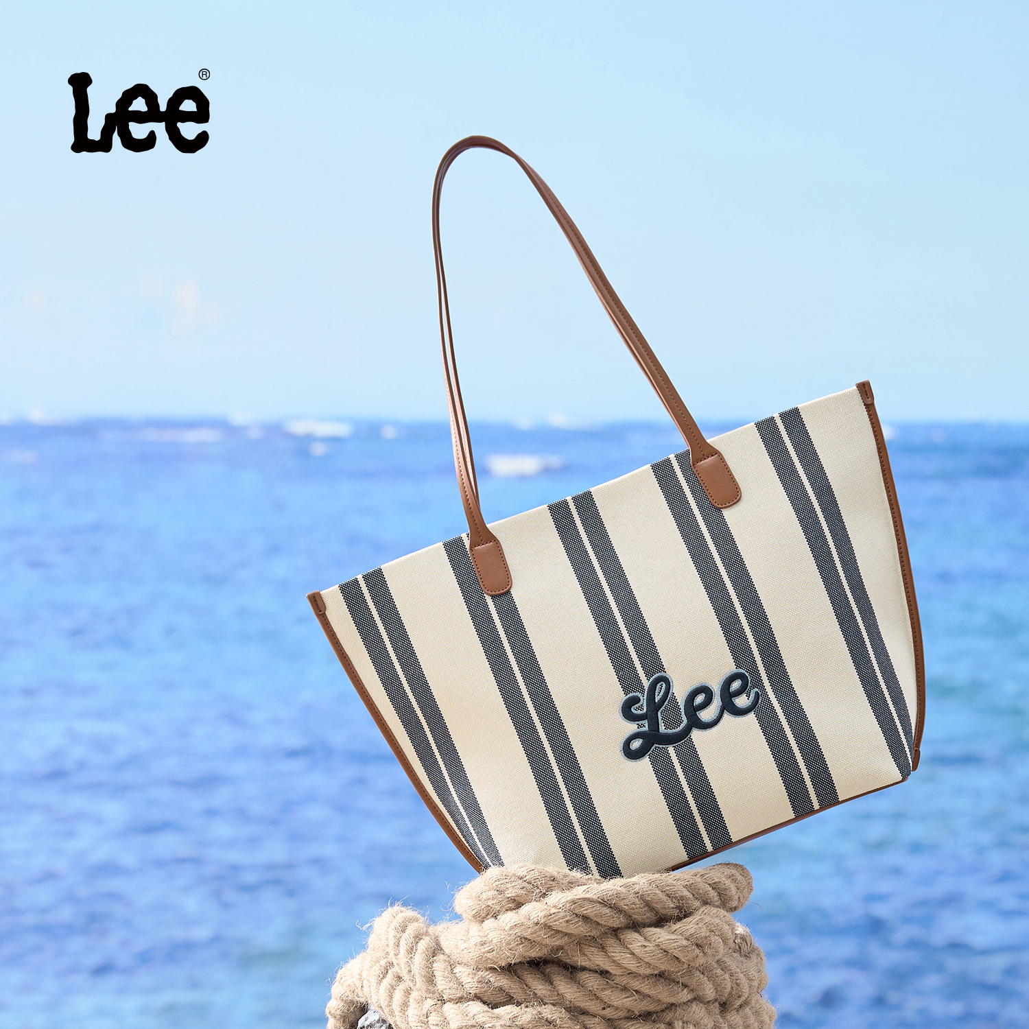 Lee官方航海系酒桶包秋季条纹托特包女海岛大容量通勤包刺绣单肩