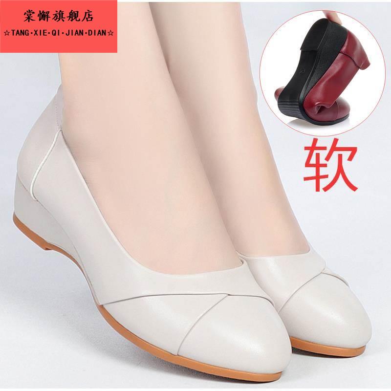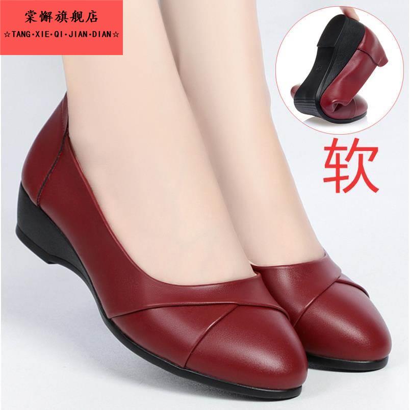春秋中跟软底舒适低跟防滑中年老妈妈鞋单鞋中老年瓢鞋女鞋滑雪袜