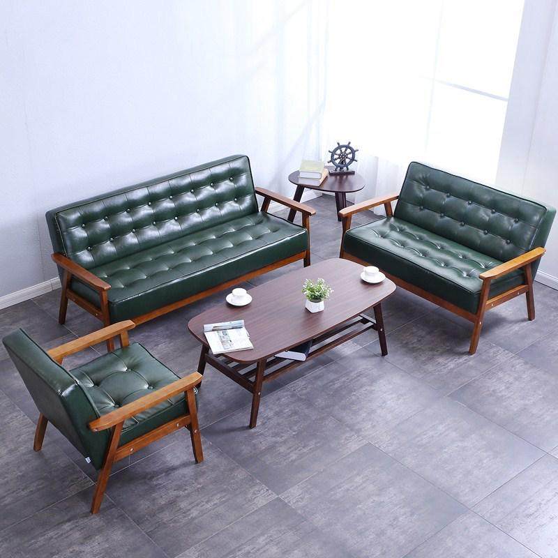 办公室沙发茶几组合套装简易小型商务简约接待服装店铺皮艺三人位