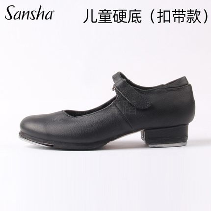正品三沙Sansha儿童真皮踢踏舞鞋专业TAP一底式舞蹈鞋硬底扣带式
