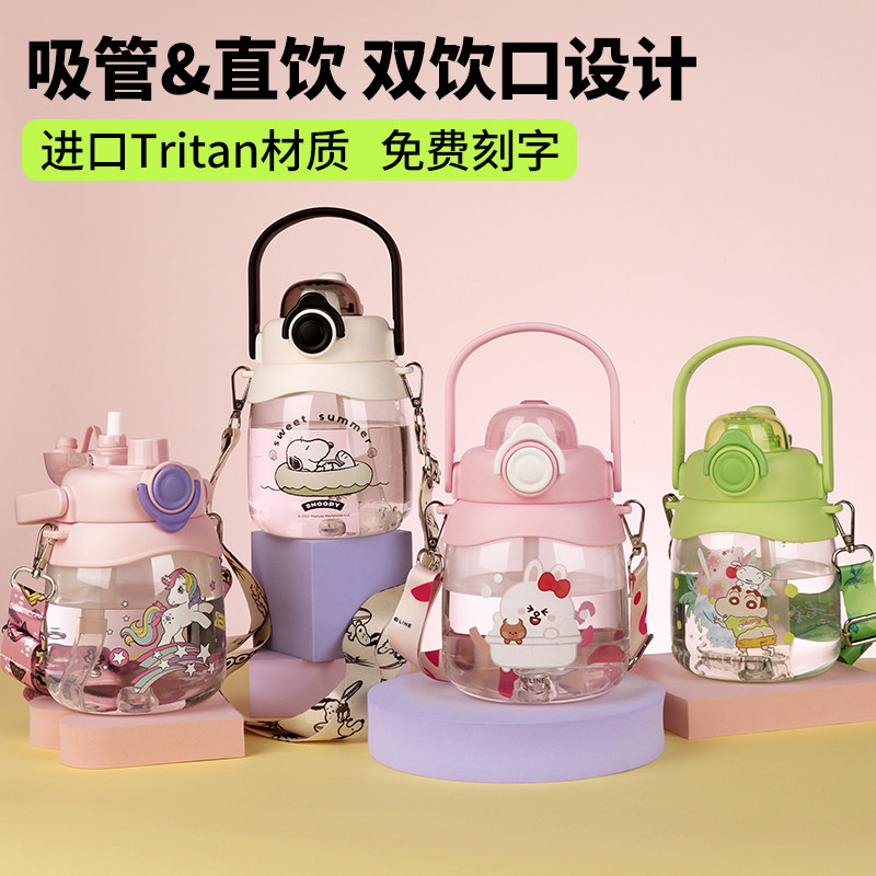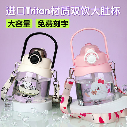 史努比大容量水杯女生高颜值大肚杯儿童运动水壶吸管杯夏天塑料杯