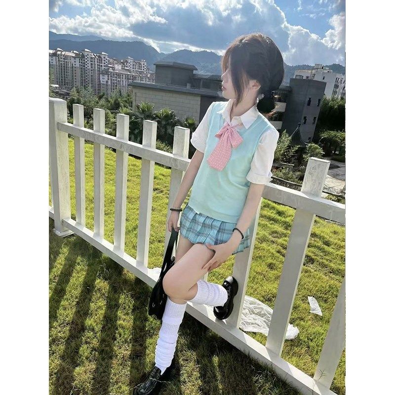 学院风针织衫V领背心马甲校供感穿搭百搭新款璃海百褶裙秋冬套装