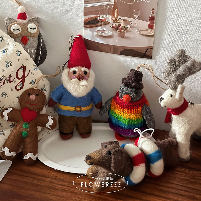 有意思可爱包挂件动物羊毛毡钥匙扣雪人毛绒公仔玩偶圣诞新年挂饰