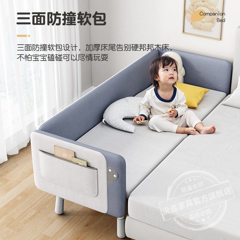 婴儿加宽床边小床儿童p拼接床男女孩软包带护栏可调节拼接大床宝