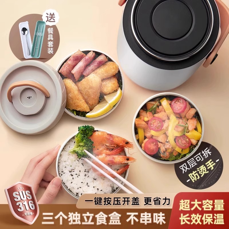 物生物家用保温饭盒多层316不锈钢大容量上班族学生便携饭桶