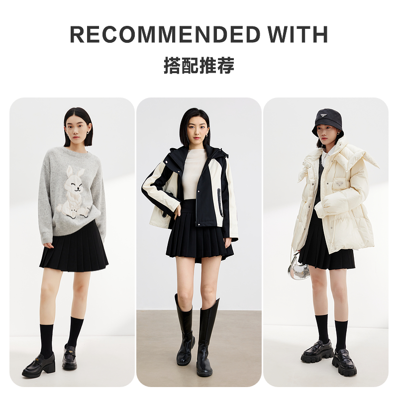 水云间黑色百褶裙短裙a字半身裙女时尚百搭收腰显瘦2025秋冬新款