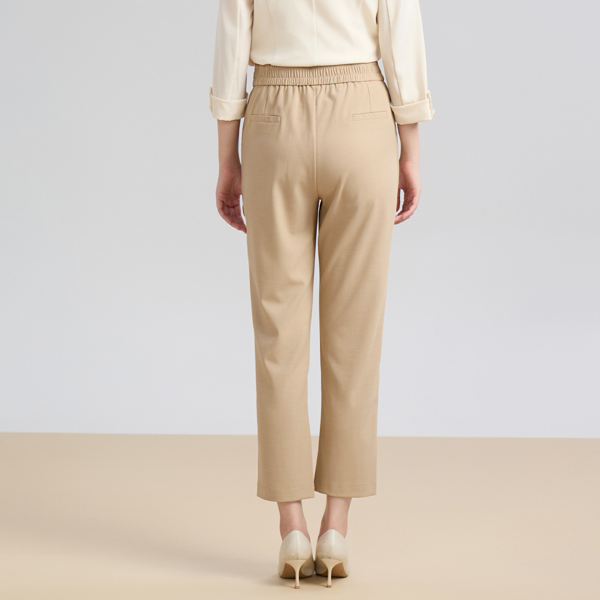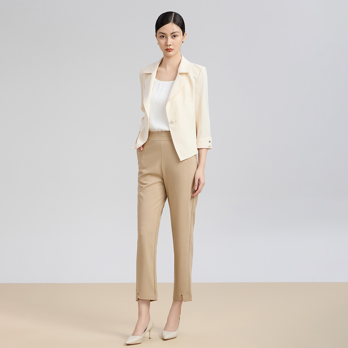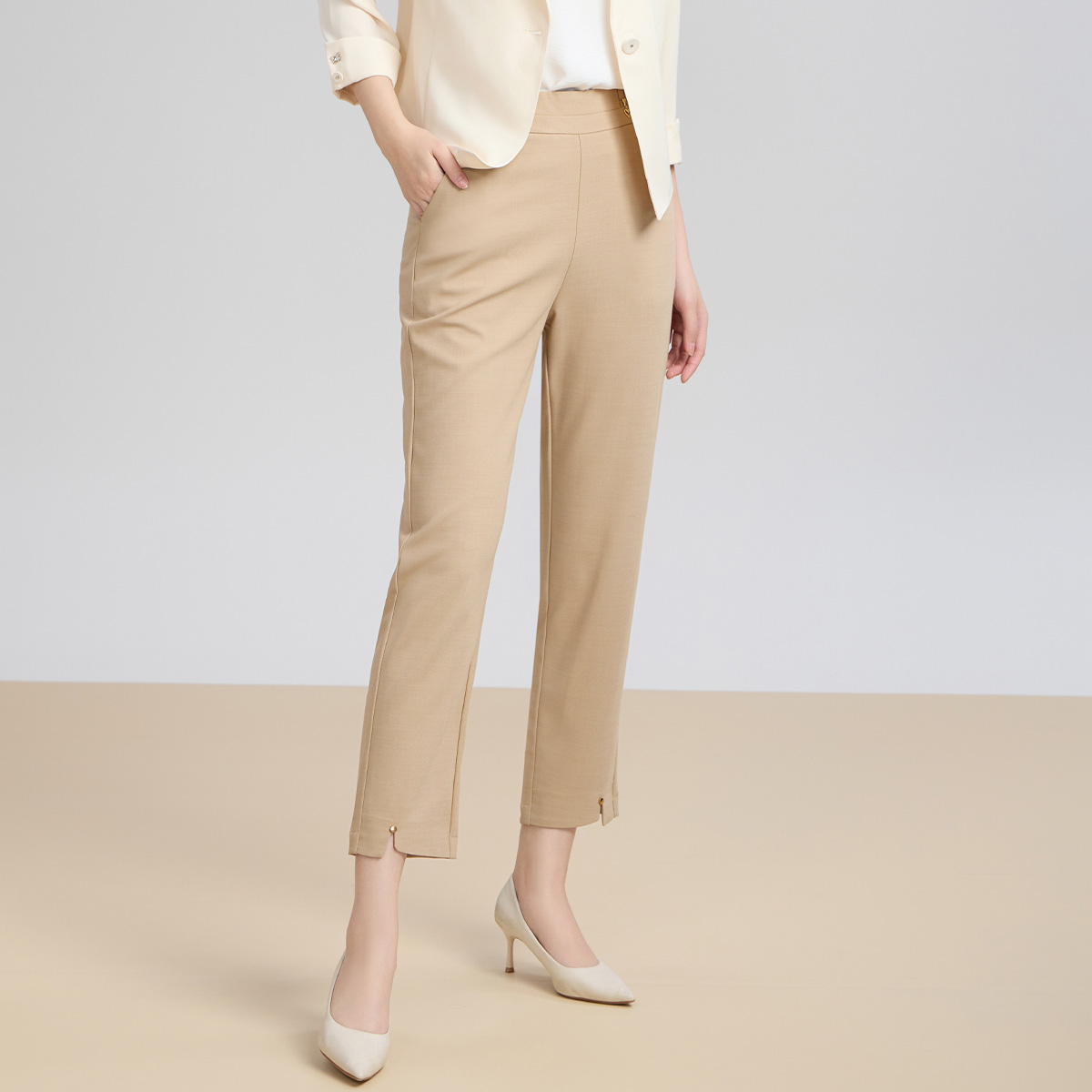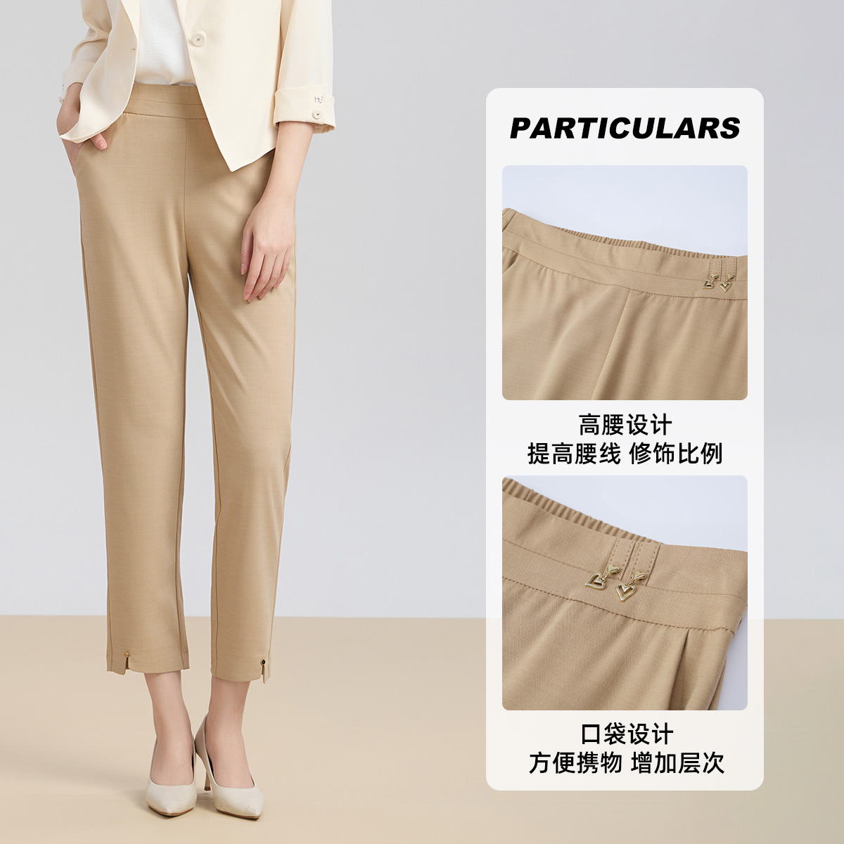 马天奴新款卡其色高腰直筒裤休闲裤子九分通勤时尚女裤