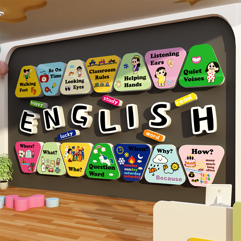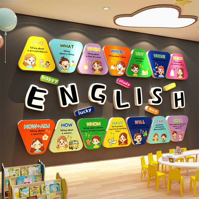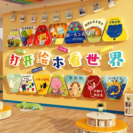 绘本馆环创阅读室幼儿园托管班文化墙贴读英语教图书角布置装饰区