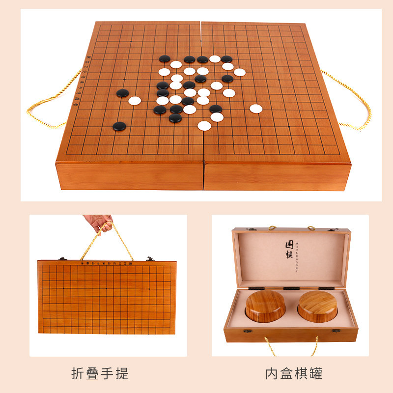 围棋五子棋儿童小学生初学套装标准19路磨砂密胺围棋木质折叠棋盘