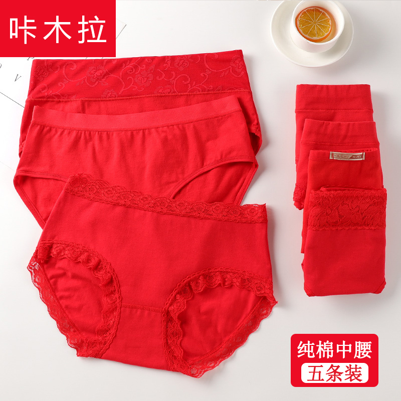 4-6条装大红色女士内裤女纯棉本命年结婚中腰高蕾丝牛蛇龙三角裤
