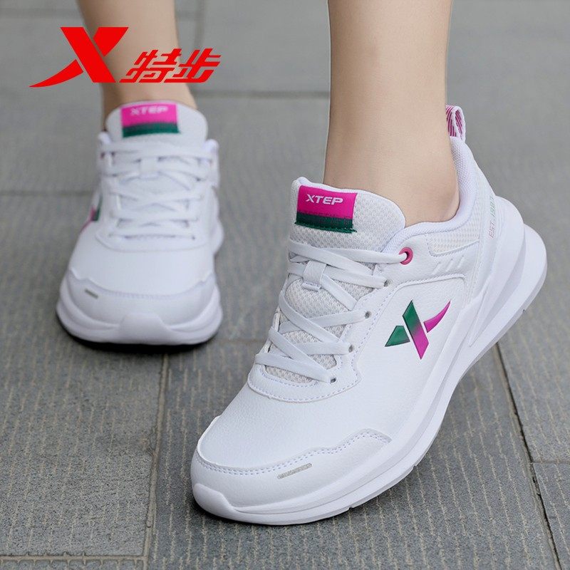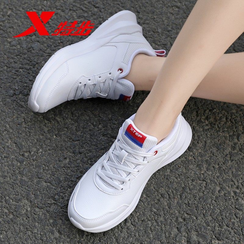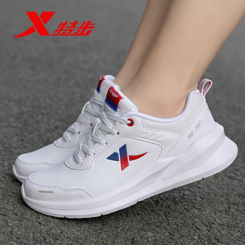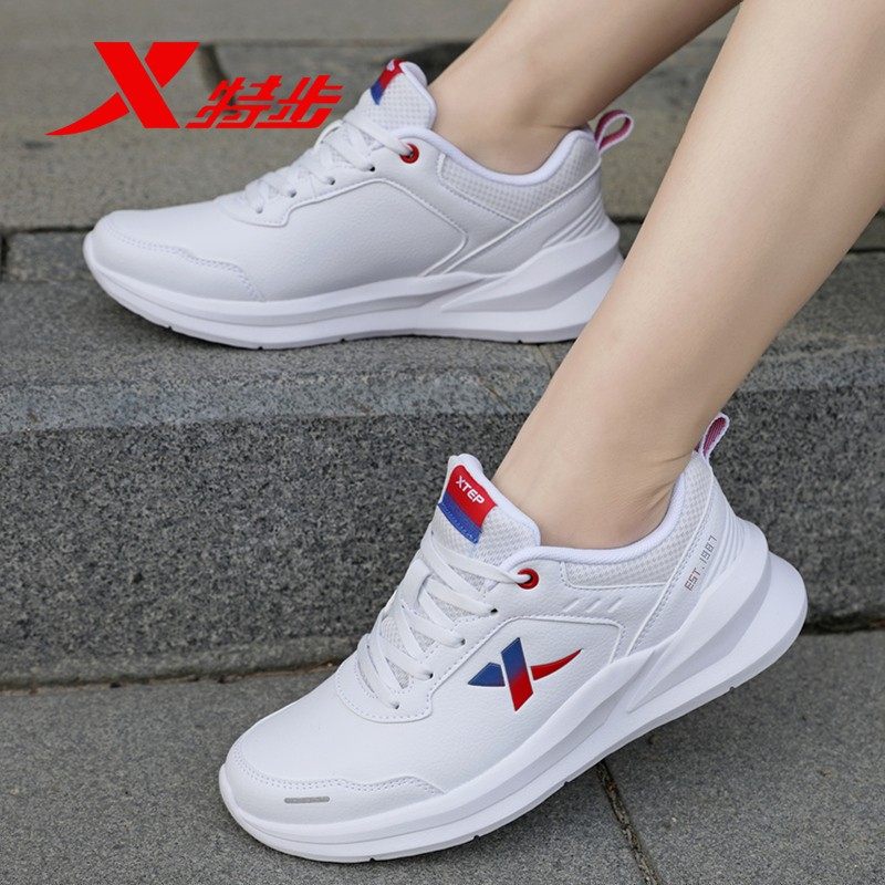 特步女鞋运动鞋2025新款冬季皮面保暖休闲鞋子女白色轻便冬季跑鞋