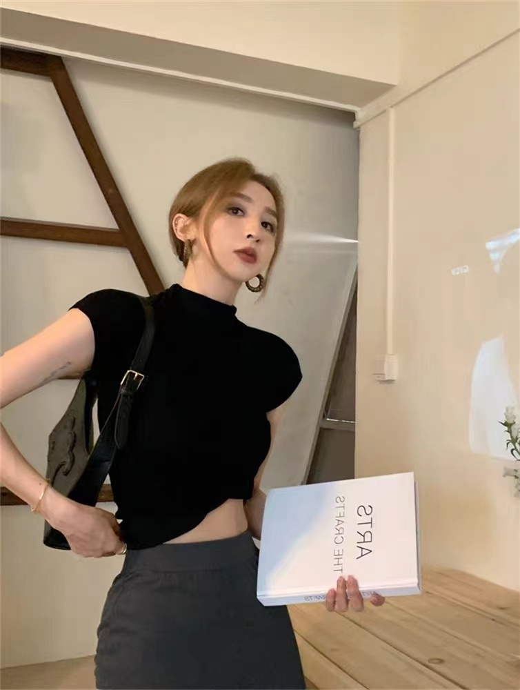 莫代尔短袖T恤女2025春秋新款修身显瘦半高领打底衫气质短款上衣