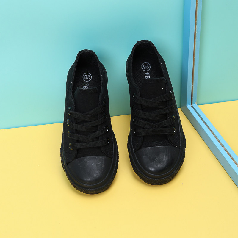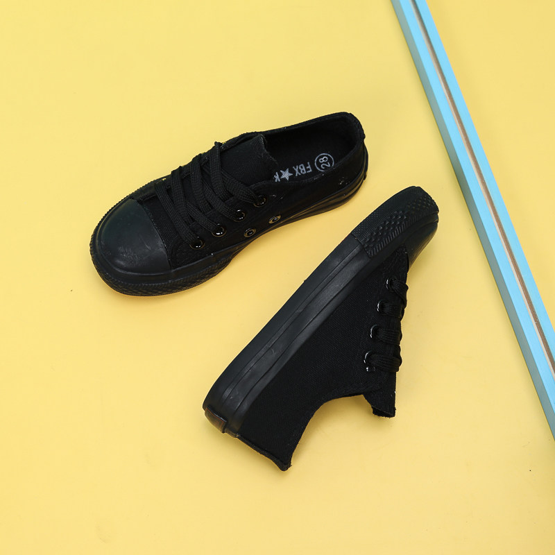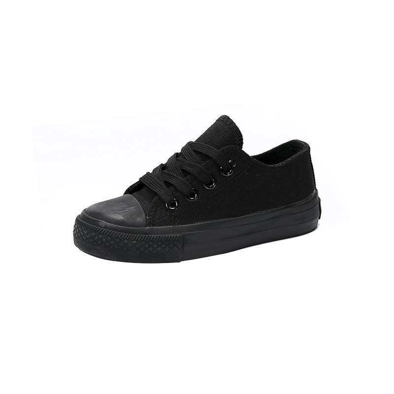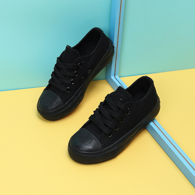 儿童全3黑色帆布鞋男童女童系带全黑布鞋低帮平底亲子鞋小童休闲